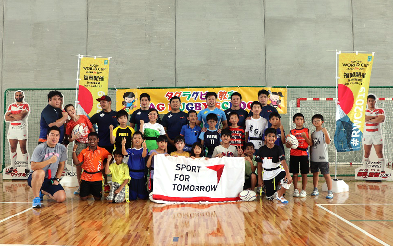 今回で30回目を迎える「アジア太平洋こども会議・イン福岡」において、同会議のこども大使やホストフレンドを対象として、国際交流の促進やアジア諸国へのラグビー普及の実現を目的とした、タグラグビー教室を開催しました。